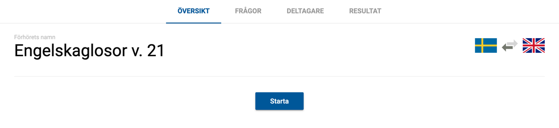 När du har gjort eventuella anpassningar och kontrollerat vilka elever som är deltagare kan du starta läxförhöret.