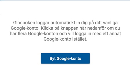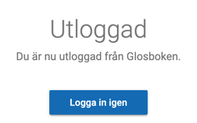Klicka på Logga ut för att bli utloggad från Glosboken. Ibland kan du även behöva logga ut från webbläsaren för att bli helt utloggad.